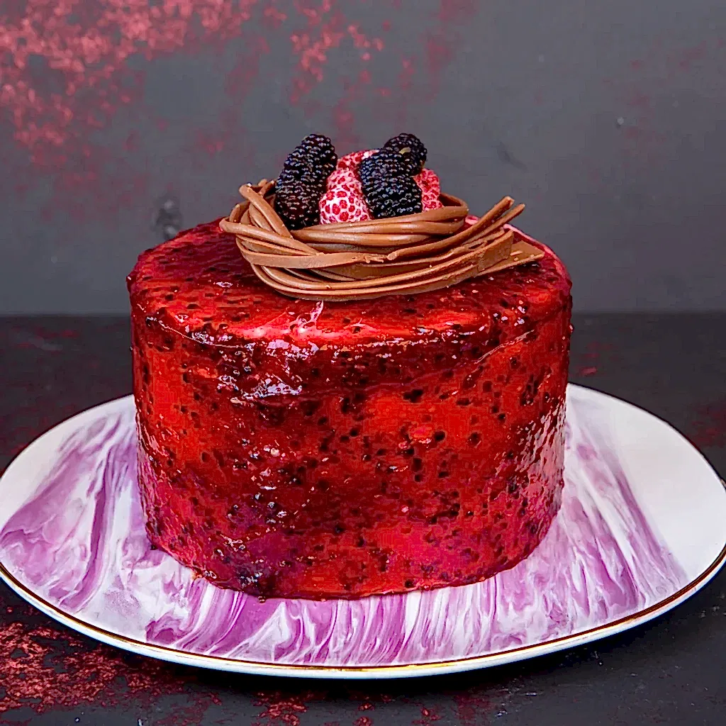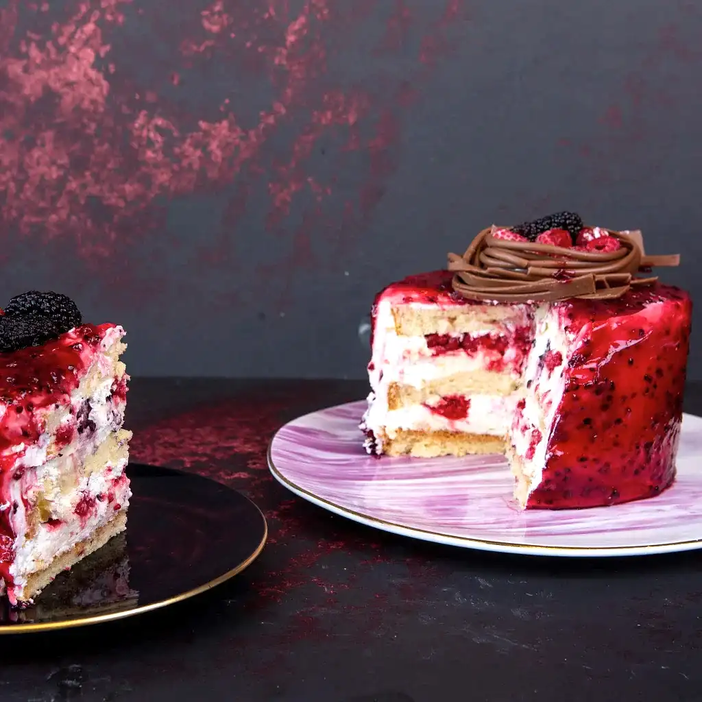 Vanilyalı kek ve krema, ahududu, böğürtlen ve yaban mersini...