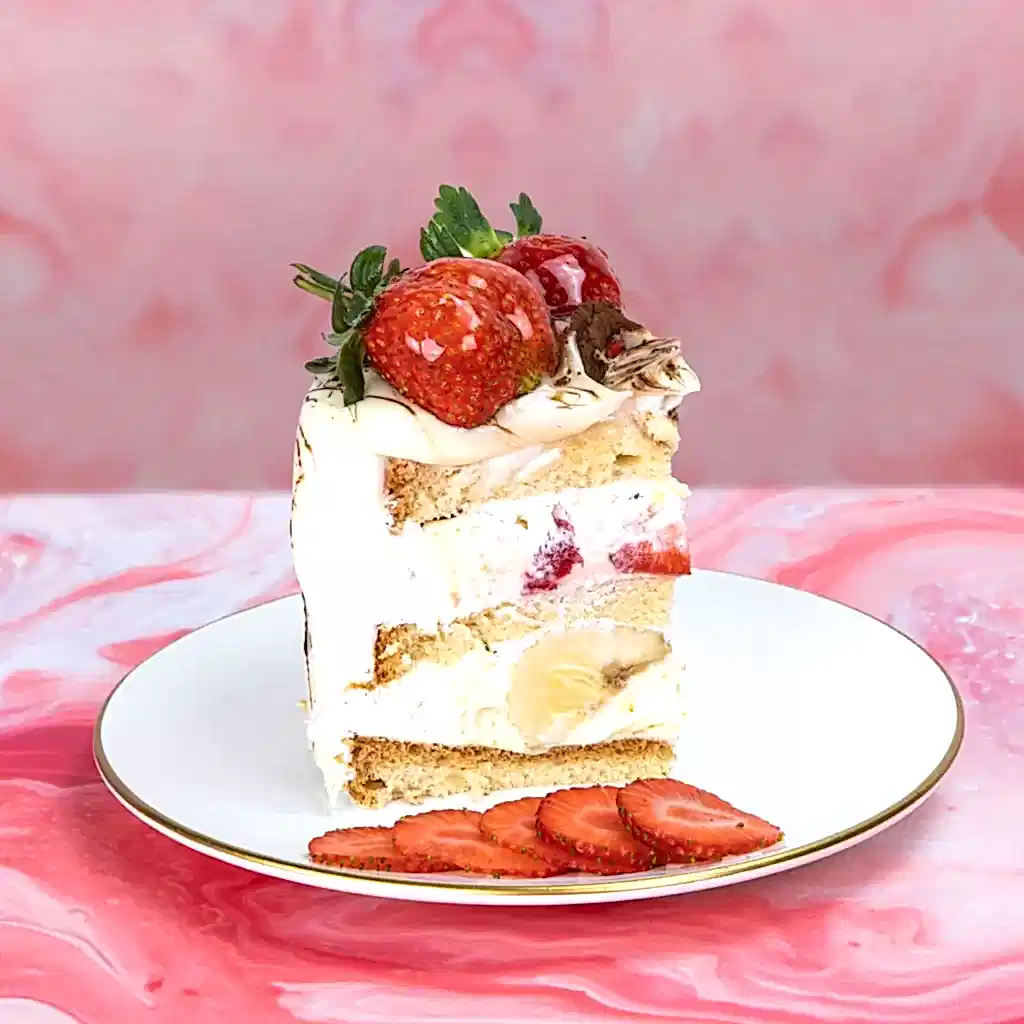 Vanilyalı Pandispanya Keki, Sarı Pastacı Kreması, Muz ve Taze Çilek