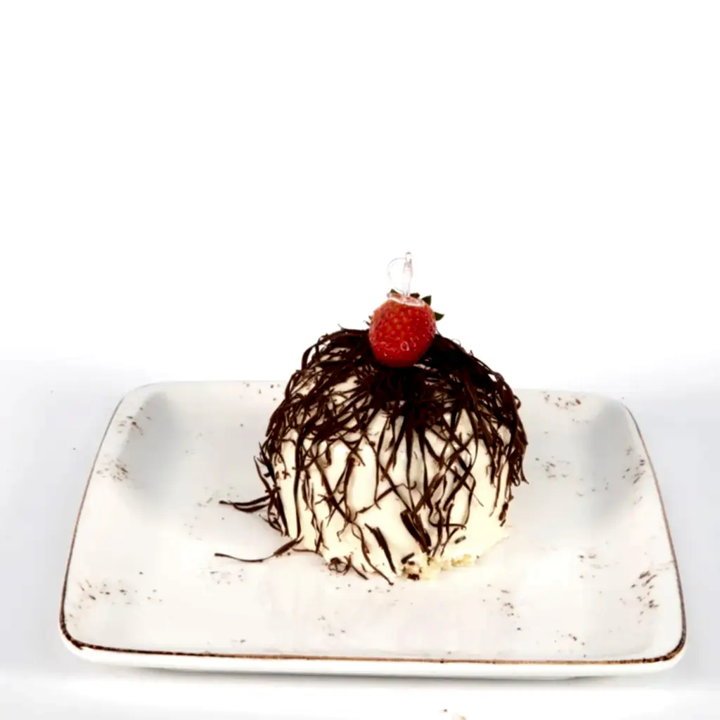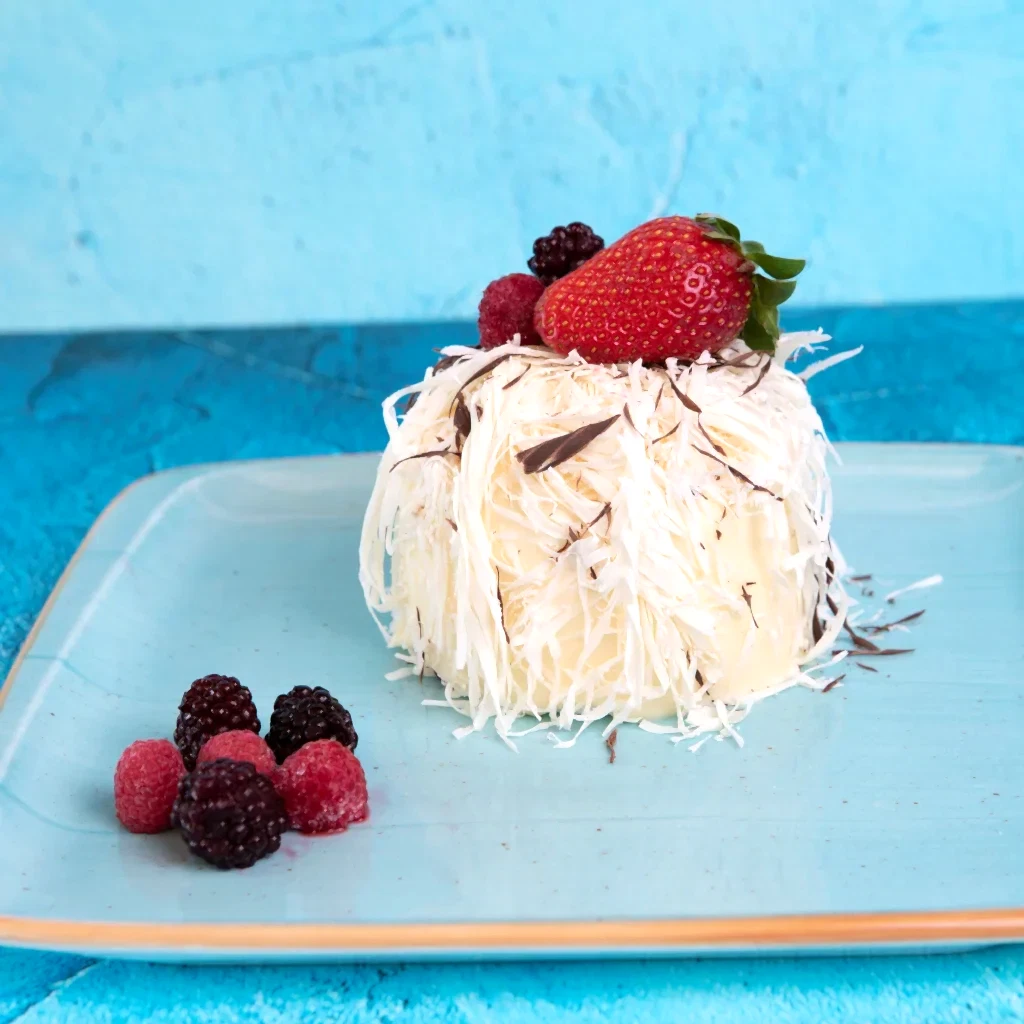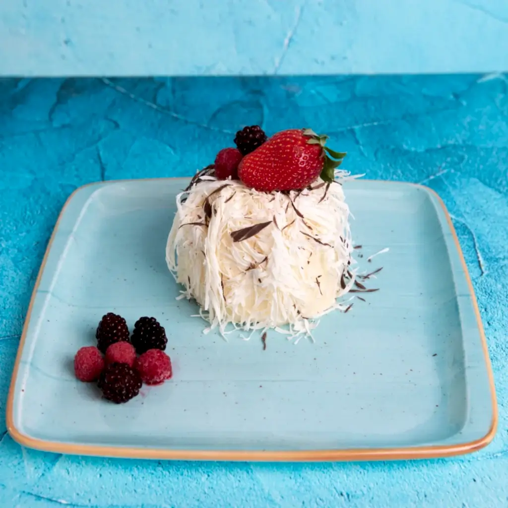 Vanilyalı keki, vanilyalı kreması, çikolatalı profiterol sosu ve kırmızı meyveler...