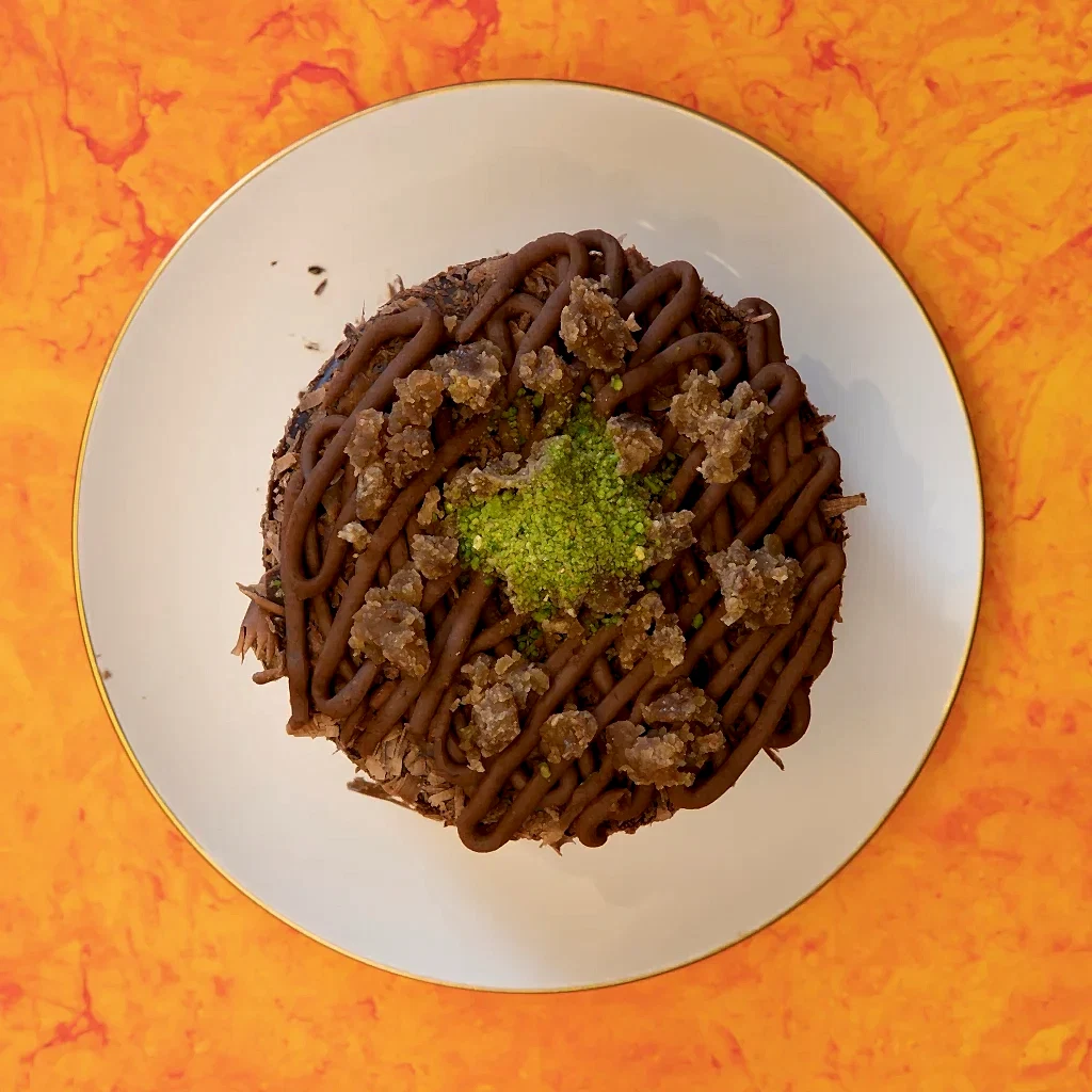 Çikolatalı keki, kestane püresi ,kestane parçaları ve parça çikolata